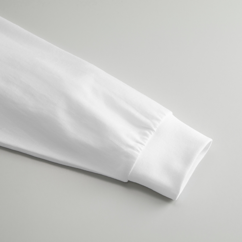 コンパクトコーマ糸の上質な生地を使用。サイジングとディテールにこだわったロンT。糸を紡ぐ際に毛羽が表面に出ないよう、内側に収束して紡ぐ「コンパクトコーマ糸」を使用したなめらかな生地。サイジングは袖まわりをゆったりさせ、身丈と身幅を絶妙なバランスになるよう調整。首まわりのステッチはオーバーロックのみのミニマル仕様、袖リブは2.1インチのしっかり長めの設計。