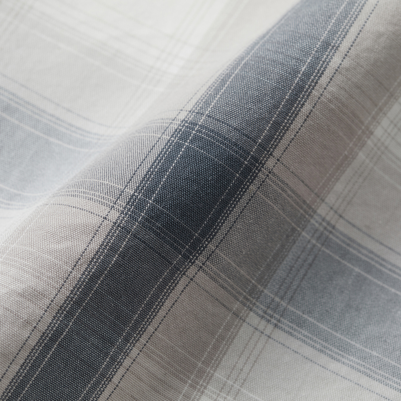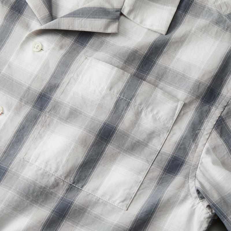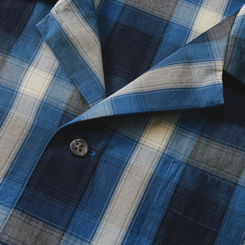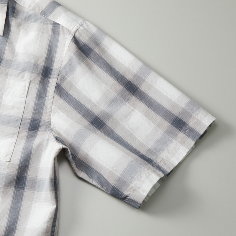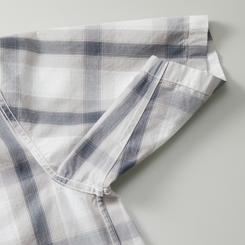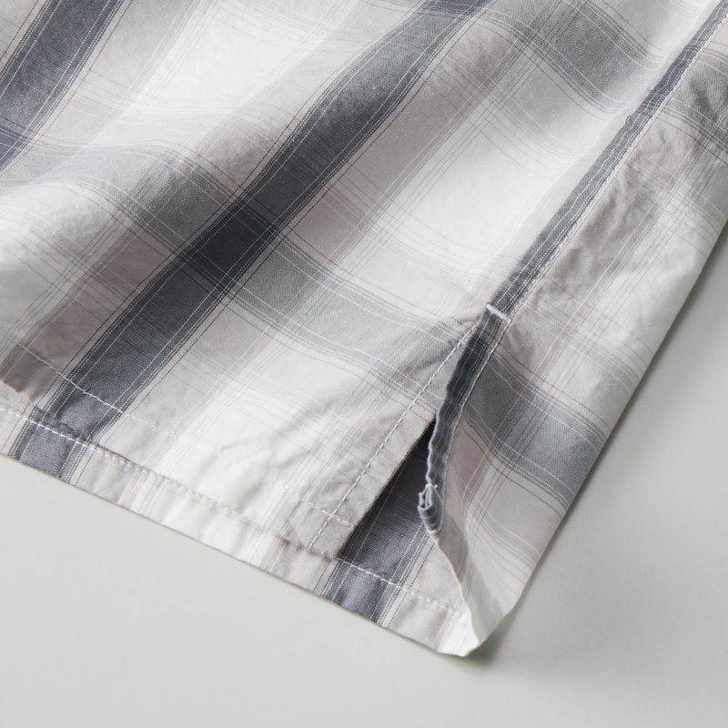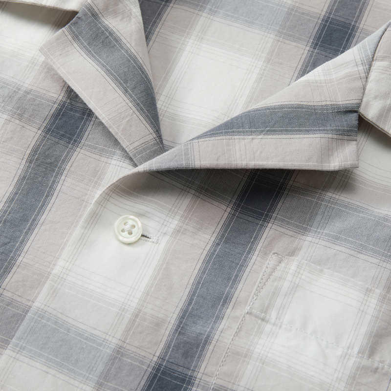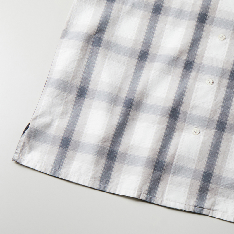 ラフで自由な雰囲気をまとったコットンシャツ。トーン・オン・トーンのチェック柄。製品洗いを施すことで生地のハリ感をほどよく抑え、やわらかな風合いに仕上げました。開放感のあるオープンカラー。アクセントになる左胸のポケットや、シェル調の上品なボタン。袖口から裾にかけては折り伏せ縫い、アームホールにはダブルチェーンステッチを施すなど、耐久性を高める工夫も。長く愛用できるアイテムです。