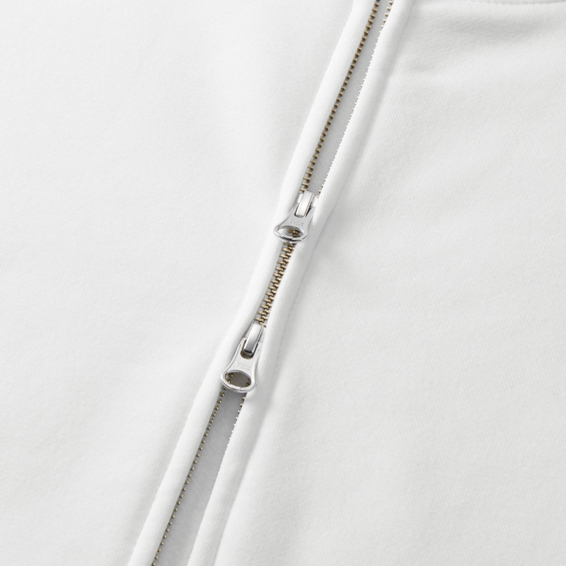 身幅・肩幅は広めで身丈は短めという絶妙なボックスシルエットに仕上げたジップ パーカ。生地は定番の10.0オンス 裏起毛を採用し、使いやすさとあたたかさはお墨付き。ファスナーは上下から開閉でき、シルエット調節が可能なYKK社製ダブルスライダー。フードひもはセルチップ加工。Sサイズから展開。