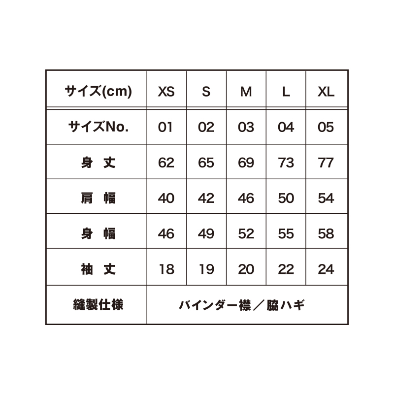 | サイズ | 身丈 | 身幅 | 袖丈 |